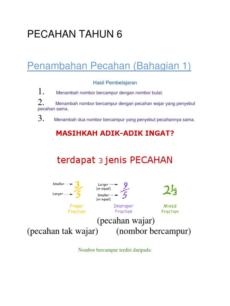 Latihan Pecahan Tahun 6 Operasi Darab Bahagi Pdf Document